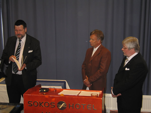 Valmistuvien puheenvuoron käytti Veijo, joka kertasi opintojen eri vaiheita. Jukka luovutti ´kolestrolilääkettä´ ja kauniin kukka-asetelman ohjelmasta vastaaville.